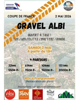 La Fédération française de cyclisme et le club Albi Vélo Sport en partenariat avec la Ville d'Albi organisent le 2 mai 2026 à Albi la première manche de la 1re édition de la Coupe de France Gravel. Départs et arrivées au Parc de Pratgraussals.